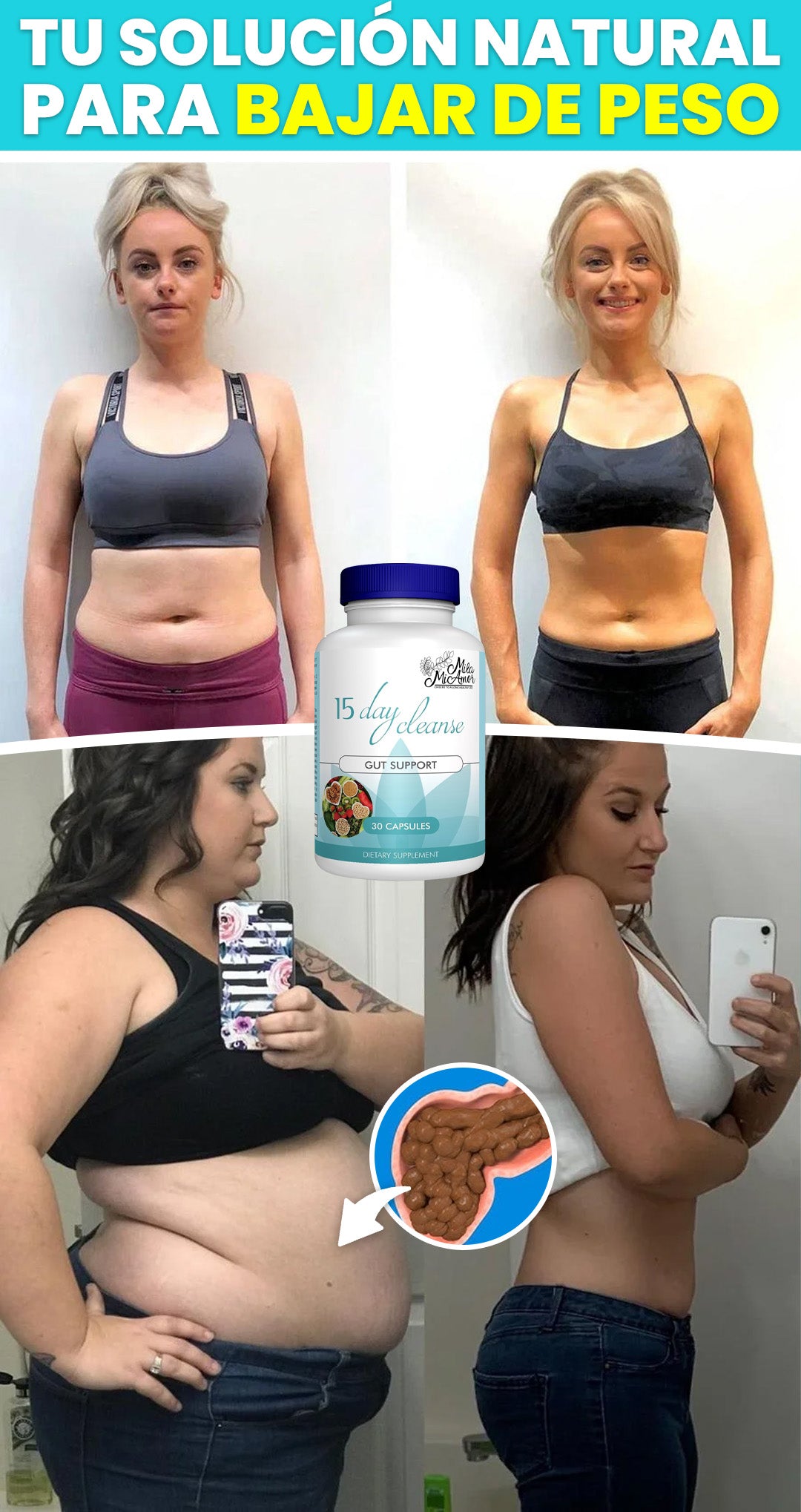¿Te has dado cuenta de todo lo que has estado acumulando en tu cuerpo? Toxinas, residuos y esa "poca" que te hace sentir lento y pesado. 15 Day Cleanse no es solo una limpieza, es una revolución. En solo 15 días, deshacerás todo lo que tu cuerpo no necesita y verás cómo esos kilos desaparecen de manera rápida y efectiva.